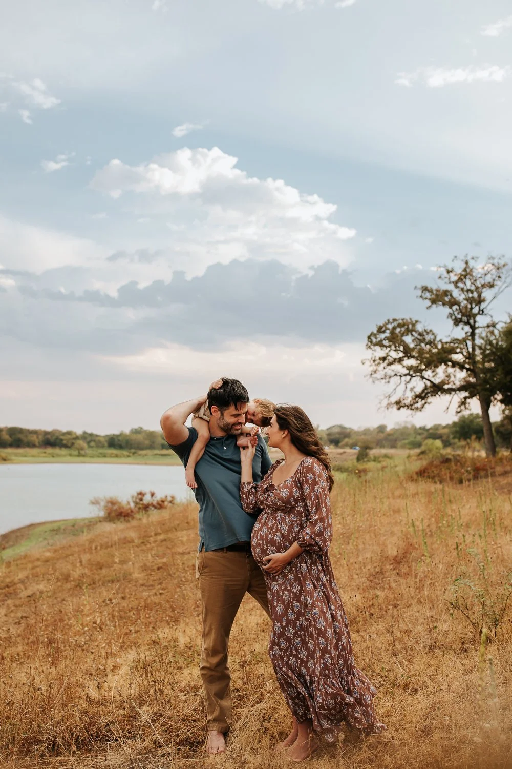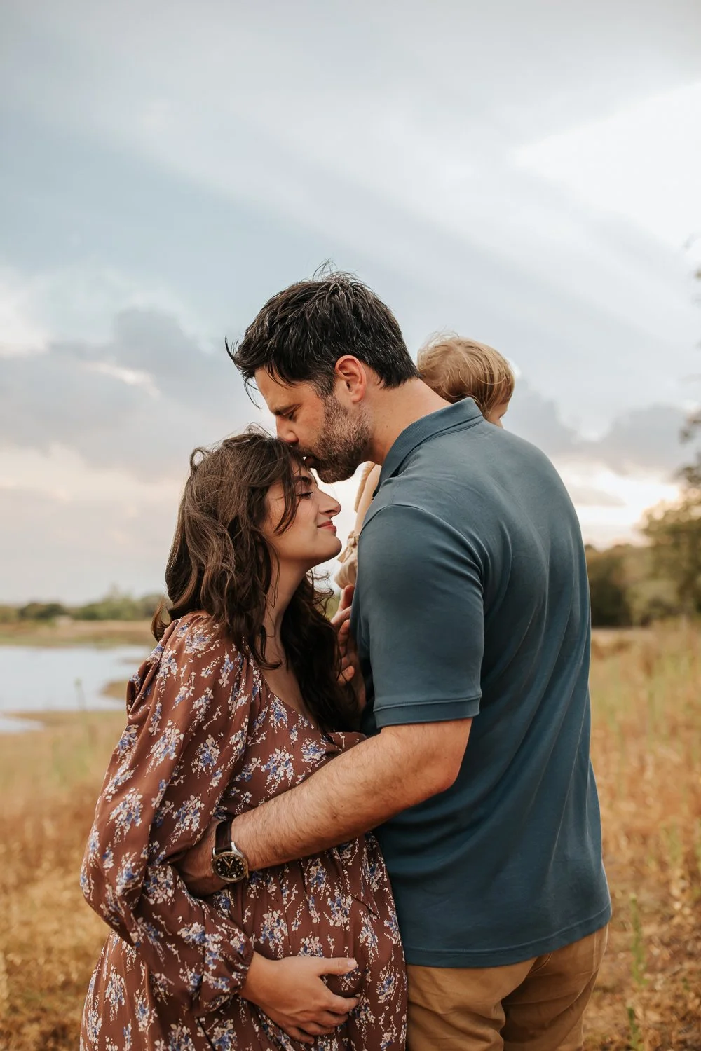 They walked down the trail just as the sun reappeared, and we started creating— the air still fresh, the world washed clean. We agreed to save the white-sheet idea for their newborn session and instead embraced what the day had given us.
