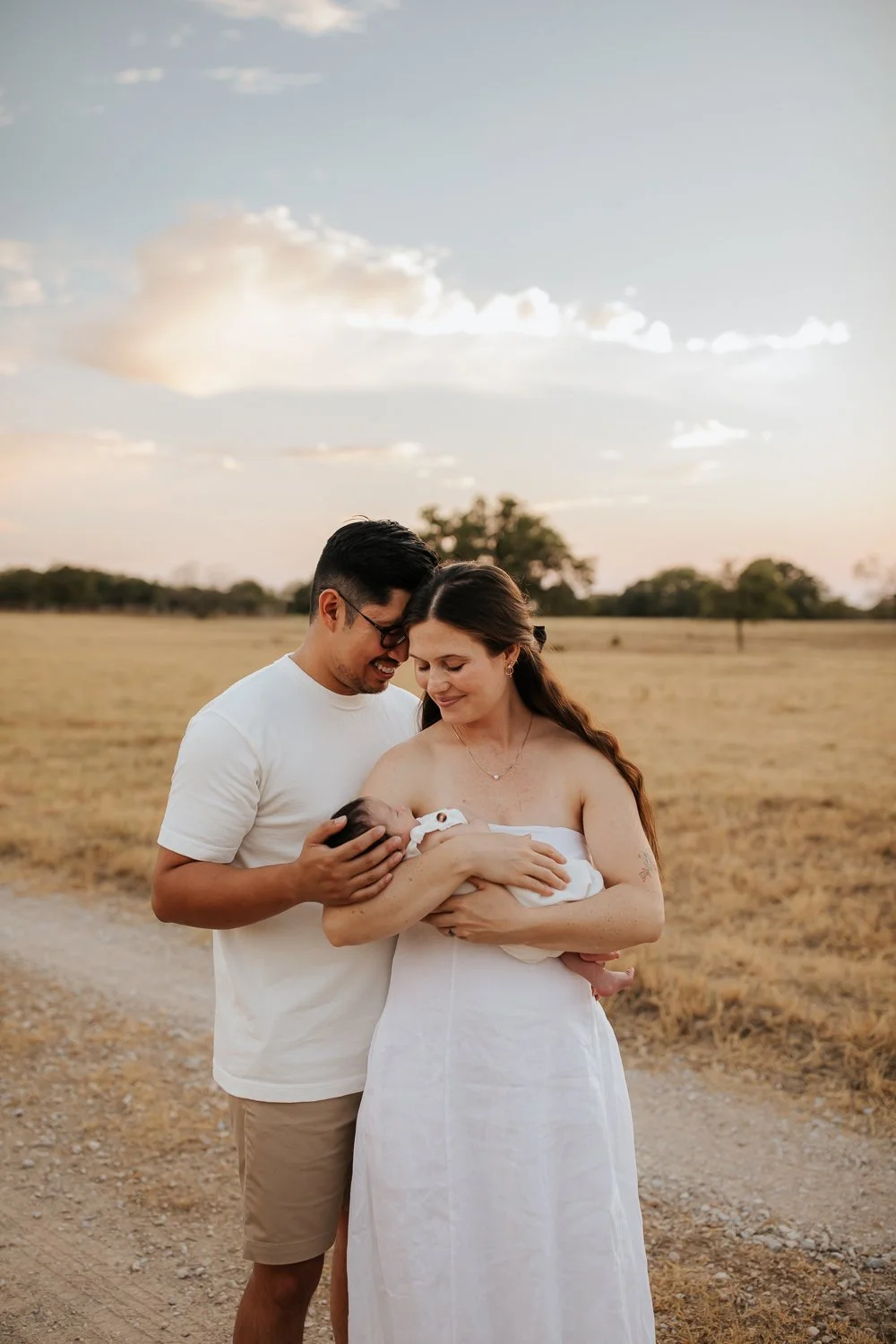 There’s something so sacred about photographing new parents— the quiet awe, the gentleness, the way they instinctively slow down. This evening was soft and unhurried; their baby boy tucked close, the hum of crickets, and the kind of peace that only comes at the beginning of everything new.